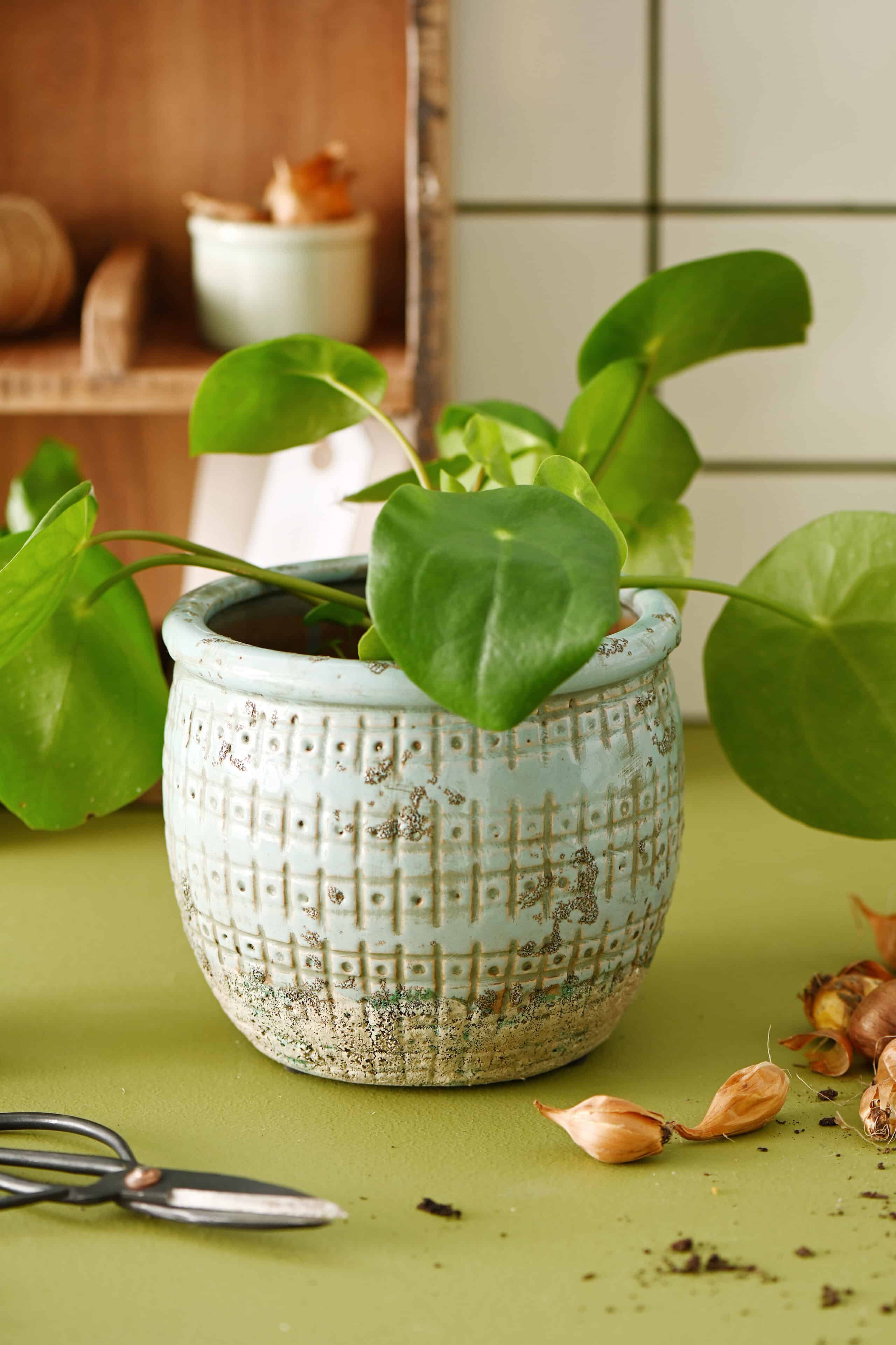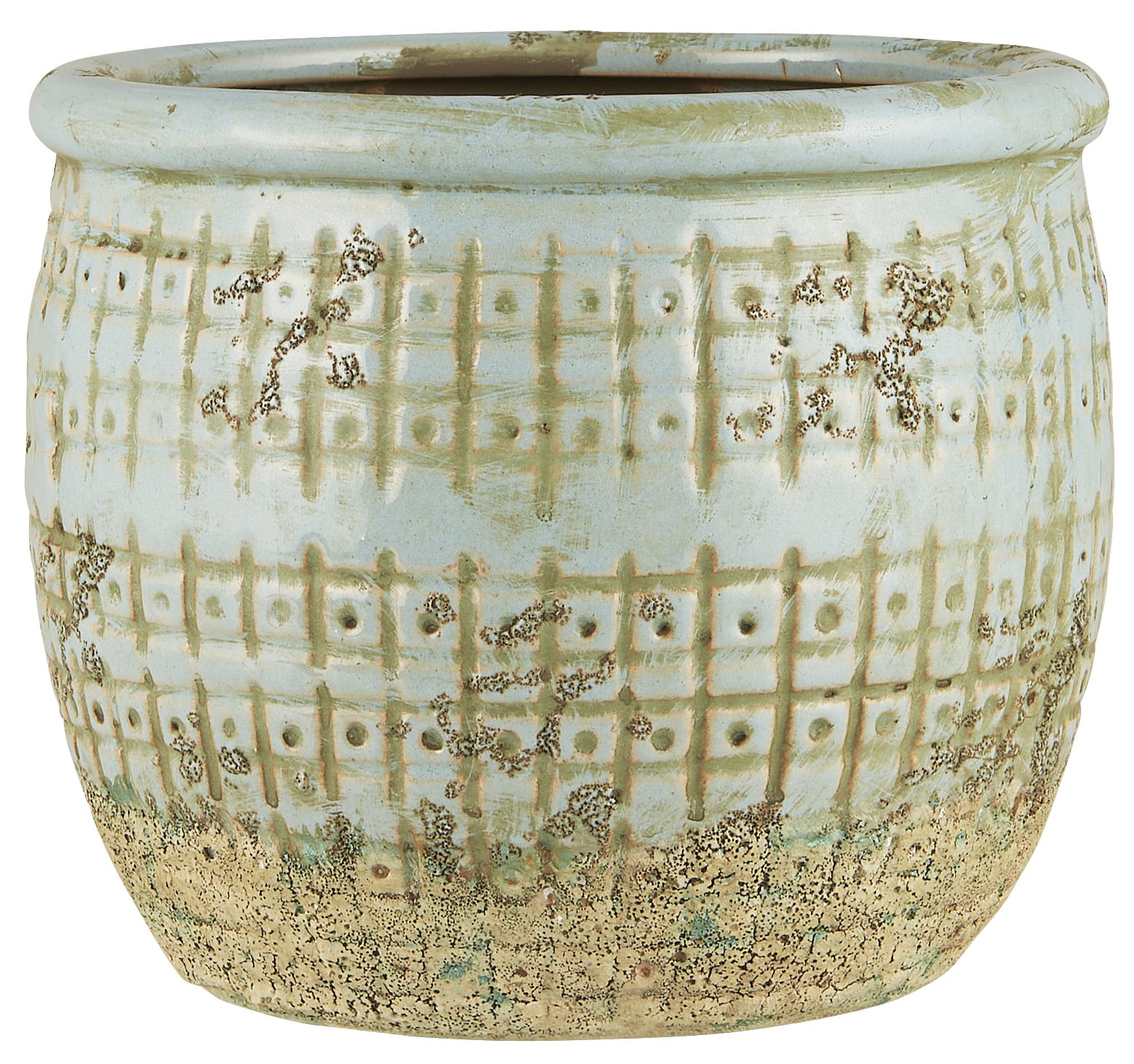 Kruka ljus blå / turkos 15,5cm. Otroligt härlig kruka i en härlig färg men inte skrikig i färgen. Fin och lite annorlunda i formen, vilket gör att den blir charmig att bara ha en av på en skänk eller i fönstret.