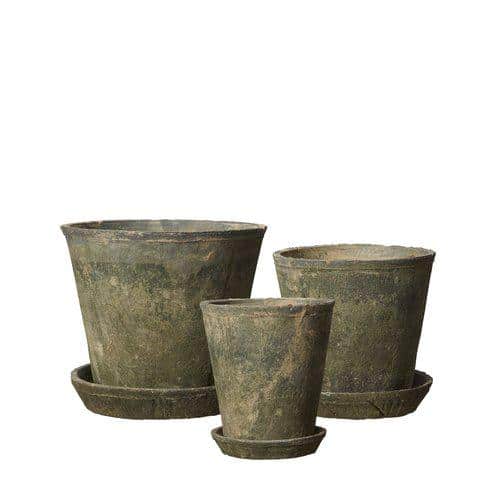 Kruka med fat gråmelerad 25x23cm. Så fin kruka i en ruff och matt stil. Snygg, praktisk med hål i botten och tillhörande fat.