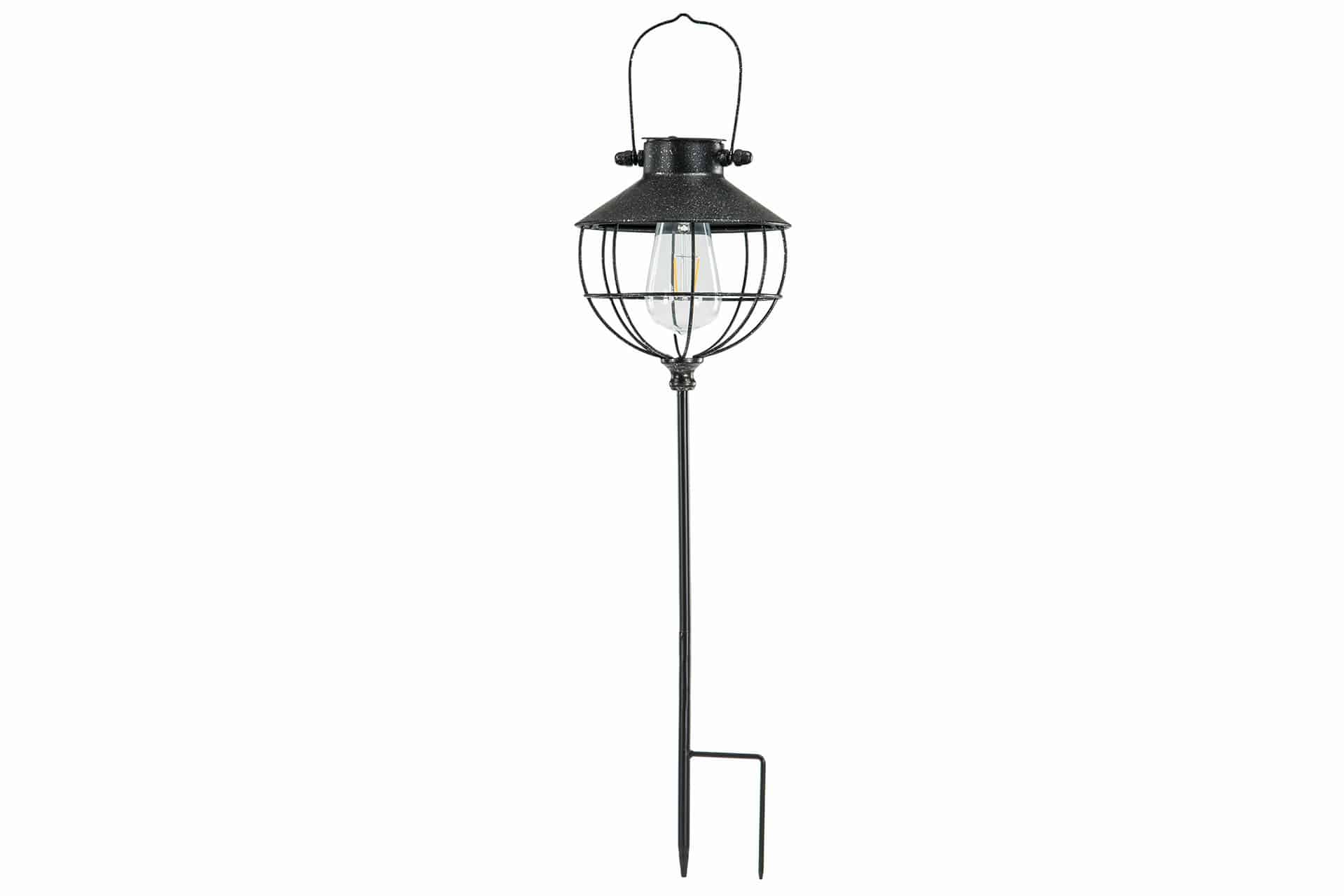 Rund solcellslykta som fästs på en pinne. Så enkel och snygg att dekorera din trädgård eller uteplats med. Solcellen sitter uppe på lyktan.