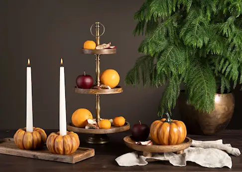 Våningsfat i tre våningar med handtag upptill och tre runda träfat. Gör det enkelt att lägga upp frukt och annat på ett vackert sätt. Tillverkat i trä och metall.